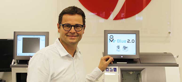 Optiker Claus Bentkjær tillsammans med Mr. Blue. Välkommen till Mr. Blue!För de trendmedvetna har det länge varit ett ”måste” att gravera in namnet på sin iPad eller iPhone – eller få det graverat på skjortan. Nu kan det även göras på glasögonglas! Hos UniOptika har man nämligen investerat i det senaste inom inslipning av […]