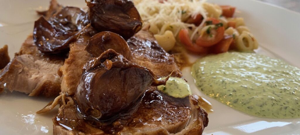 Veras Veranda: Fläskstek med vitlök, varm pastasallad och sauce verde