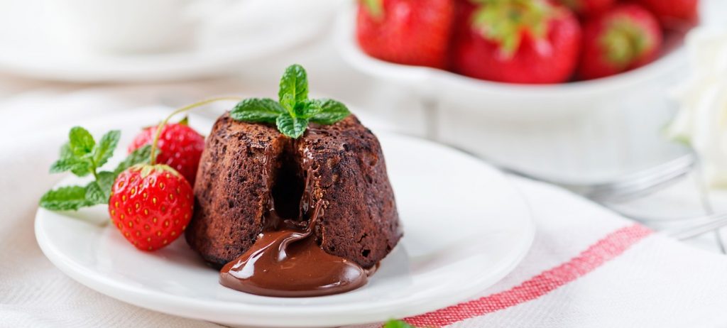 Chokladsoufflé med jordgubbssorbet