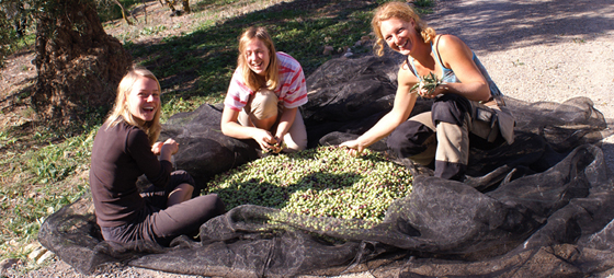 I femtusen år har man gjort likadant! Det är rätt häftigt att tänka sig hur man i Syrien och Libanon på 3000 talet f.kr tog med sina nät, korgar och käppar ut i olivlundarna för att skörda. Jag tänkte i alla fall på det när jag stod där med min käpp och min lilla ”kratta” och slog och räfsade ner oliverna på nätet på marken.
