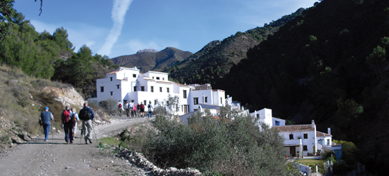 Vi träffas klockan tio på morgonen, vid Petancabanorna bredvid Supersol i Nerja. Strax kommer det en lång man emot mig, det visar sig vara Larry Forsgren, han som leder och organiserar vandringarna för AHN i Nerja, också även denna dag. Vi kliver in i bilarna och sedan bär det iväg mot Torrox, vi svänger av upp mot Cómpeta, och jag njuter i fulla drag av den vackra utsikten som svischar förbi bilfönstret. Just innan vi når den lilla bergsbyn Sayalonga, så svänger vi av åt höger på en liten grusväg, den följer vi några kilometer innan vi stiger ur bilarna. Nu återstår det cirka tre kilometer innan vi når Acebuchal, den lilla bergsbyn som ligger gömd uppe i bergen mellan Frigiliana och Torrox, och det är från denna by som AHNs avslutningsvandring för hösten börjar. Vi är ungefär 20 personer som har samlats idag, men normalt sett så är det fler deltagare, men många har redan åkte hem för julen, förklarar Larry. AHN i Nerja är den näst största föreningen på kusten, det beror främst och mest troligen på att det är en mycket aktiv förening, vandringarna är bara en del av alla de aktiviteterna som ordnas.
