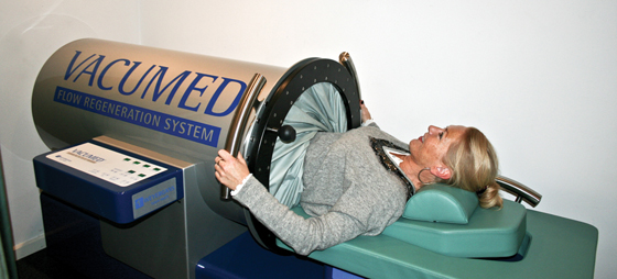 Vågor med omväxlande undertryck och normaltryck fungerar som ett extra hjärta eller som en pump: Vakuumet suger friskt blod och syre ner i underkroppen och samtidig får artärer och vener optimal rehabilitering. Behandlingen, som bara tar 30 minuter och är fullkomligt smärtfri och behaglig, vänder sig i första hand till personer med cirkulationsbesvär, som t.ex. åderförkalkning och bensår, men också till idrottsmän som med Vacumed behandling får kortare återhämtningstid och snabbare läkning av idrottsskadar. Rent kosmetisk är behandlingen effektiv mot celluliter.