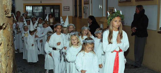 I ett samarbete mellan Svenska skolan i Marbella och Marbella stad bjöds allmänheten på söndagen den 13 december in till ett traditionellt Luciafirande på Plaza de la Iglesia i centrala Marbella. Kön ringlade sig lång till ståndet med glögg, varm choklad och pepparkakor medan barnen i Svenska skolan i Marbella sjöng traditionella svenska och spanska julsånger. Luciatåget bestod av skolans drygt 40 elever i åldrarna 3-12 år.