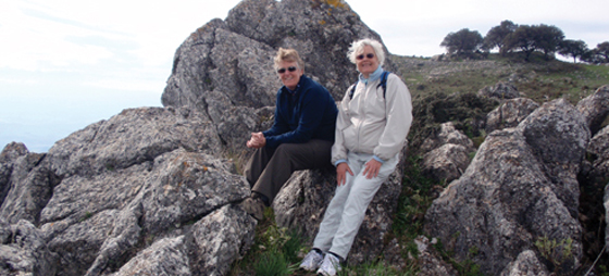 Det är så brant att vi är beredda att ge upp, så jag får påminna väninnorna om att det är bara mesar som ger upp halvvägs. Det hjälpte och efter 5 kvarter står vi uppe på toppen. Dessvärre är det ganska disigt, så vi kan varken se Gibraltar eller Afrika, vilket man annars kan se en klar dag.