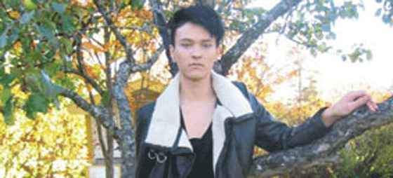 Albin från Skellefteå med sin moderiktigar fårskinnsjacka.