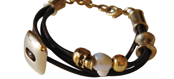 Kollektionen Faubourg består av armband, nyckelringar och halsband i läder, smyckat med pärlor och stenar.