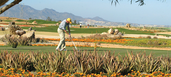 Aldrig har jag spelat på en golfbana där man ska tänka efter och behöver en plan över hur man ska spela hålet. Banan är designad så att det finns gräs på teerna, fairway och greenerna, men planteringar med kaktusar gör att om man inte träffar bollen rätt, kommer man att ligga i planteringen eller sand/jord eller vatten. Denna annorlunda golfbana har inhyst många internationella turneringar och 2004 var den värd vid Spanish Amateur Open.