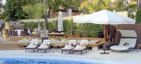 ”Sala Beach Club till höger” visar skylten. Vi befinner oss i ett lugnt bostadskvarter och om det inte vore för skyltens otvetydiga budskap skulle jag aldrig ha gissat att området även inhyser en hipp strandklubb. Ca 100 meter från skylten slutar vägen tvärt och när vi stiger ut ur bilen råder det inte längre några tvivel om att vi har kommit rätt. Inne bakom träd och buskar pumpar basen och vi följer musiken längst en liten stig. Plötsligt har vi hamnat mitt i festen. Runt baren, i utomhusrestaurangområdet, i poolen och vid solbäddarna har knappt 100 gäster mycket trevlig med drinkar, snacks och avkoppling. Snart förstår vi också att huvudspråket här är engelska.