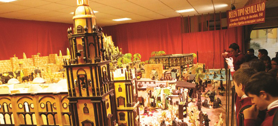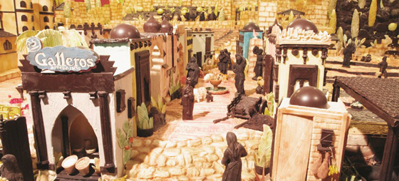 ”För att färdigställa julkrubban har det gått åt nästan 1,5 ton mörk och vit choklad, stora mängder marsipan och socker”, berättar guiden. Stolt tillägger hon, att det för att göra världens största ”belén de chocolate” – chokladjulkrubba – på hela 52 kvadratmeter, har arbetat sju konditorer, dag ut och dag in under fyra månader.