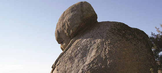 Stenar? De är enorma! Gigantiska stenbumlingar, runda och släta, ligger utspridda bredvid fyra stora dammar. Av ortsborna kallas de höga stenarna ”käglor”, men för mig ser det mer ut som kroppar, nackar och huvuden – som om stora statyer som aldrig kom att träffa deras Michelangelo skulle finnas gömda inuti dem. Min keltiska själ drev mig att röra vid dem som om de skulle överföra någon magisk livskraft. Tanken var: finns där någonting ofattligt gammalt djupt inne i dessa enorma ägg?