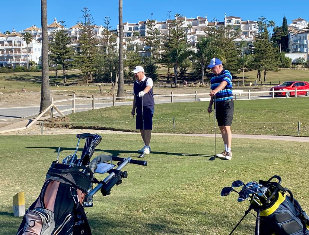 Veckogolfen startade, vårpremiär, med måndagsgolf på Mijas Los Lagos.