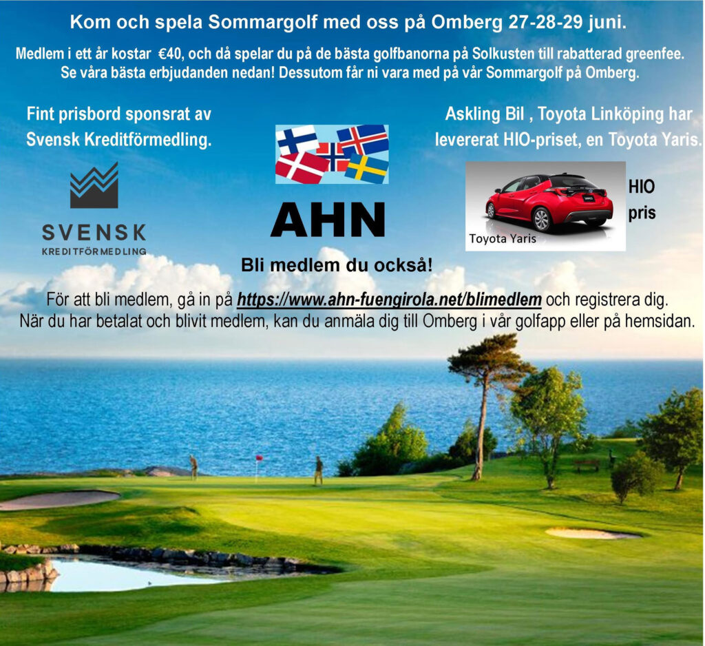 Anmäl er till AHN Sommargolf på Omberg Golf Resort den 28–29 juni (extra dag 27 juni). Vi spelar slaggolf Eclectic (par+5 slag) över två tävlingsdagar. Shotgun dag 2.