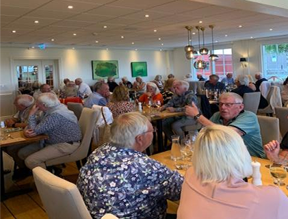 Signaturhålet, nr 13, par 5, med strålande utsikt över Vättern och den vackra Västgötasidan. För 19:e året i rad arrangerade AHN sommargolf. Anläggningen är mycket imponerande, ytterst välskötta ytor och i ständig utveckling. För närvaran-de byggs ytterligare en hotelldel med 50 rum, som öppnar våren år 2022. I år var vi totalt 84 personer från när och fjärran, varav 71 golfare, som gjorde upp om placeringarna i prislistan. Vi fick möta fyra representanter från sponsorn Jool Group, anförda av Kurt Carlsson, som mycket gene-röst bidrog med ett uppskattat prisbord. Vinnare i dam-klassen blev Elisabeth Korp och i herr-klassen Stefan Dolvander.