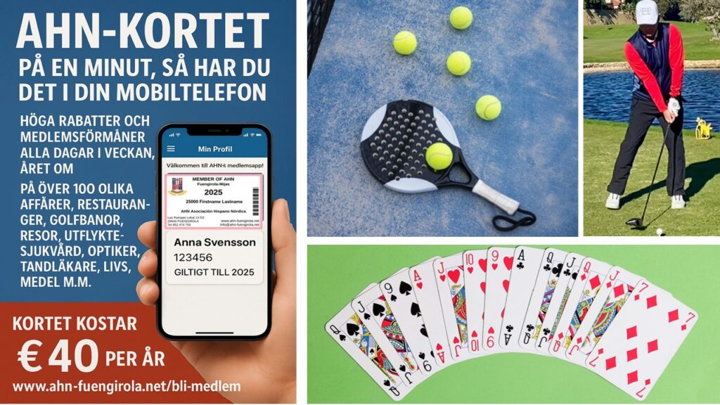 Har nu stängt för säsongen efter en fantastiskt trevlig vår. Nu ser man fram emot att öppna igen i höst, tisdagen den 16 september kl. 12.00, och önskar alla AHN:are och övriga gäster en trevlig sommar. Passa på att bli medlem nu, och utnyttja alla fantastiska förmåner under sommarperioden, och så ni kan vara med när alla övriga aktiviteter drar igång under hösten. https://www.ahn-fuengirola.net/bli-medlem