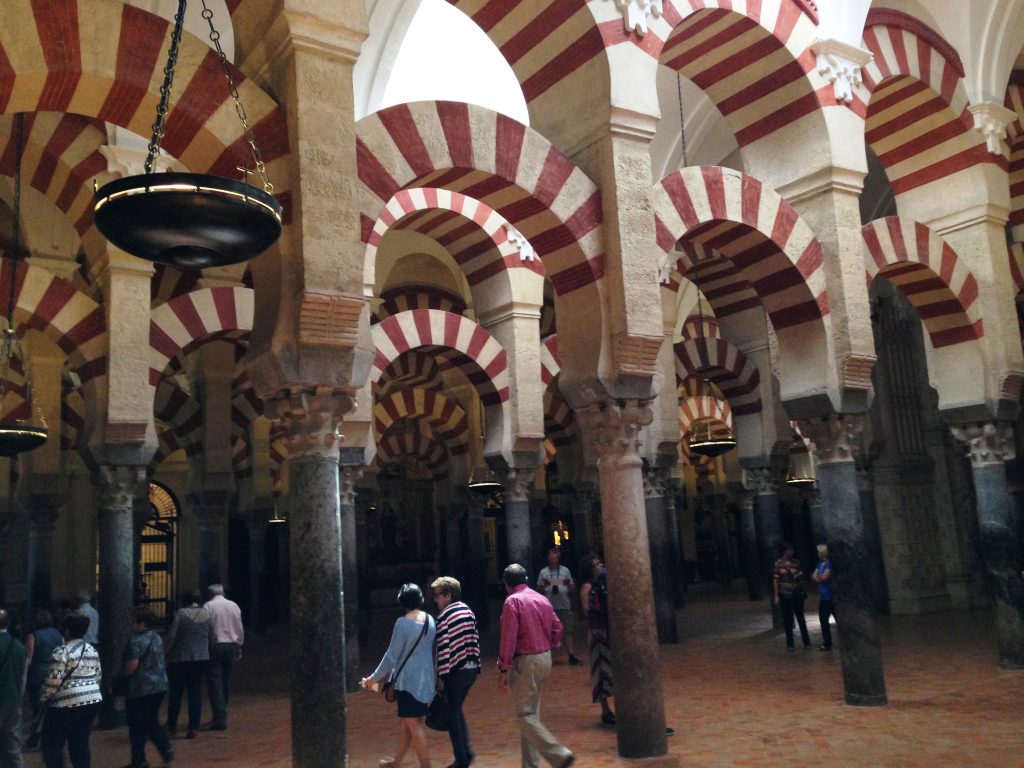 Under delar av medeltiden var Córdoba världens största och rikaste stad. Lyxiga hus med vackra trädgårdar, flera allmänna bad och enorma bibliotek med översättningar av bland annat Platon och Aristoteles var bara några av de saker som staden kunde stoltsera med. Córdoba hamnade i arabiska händer år 711, men där bodde både araber, judar och kristna fredligt, sida vid sida, och de träffades för att diskutera medicin, teologi och sociologi. Tillsammans var de starka. La Mezquita, den vackra moskén med röda och vita pelare i granit, jaspis och marmor, ska fortfarande vara den största arabiska byggnaden utanför den muslimska världen.