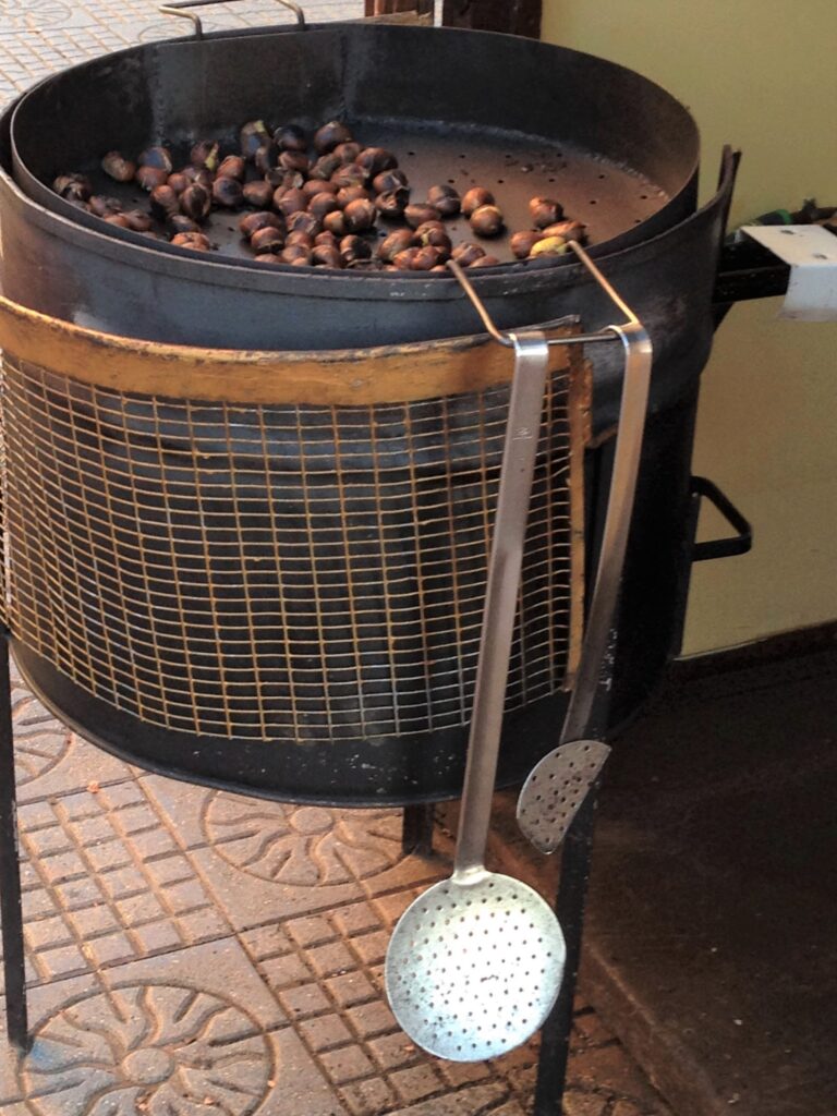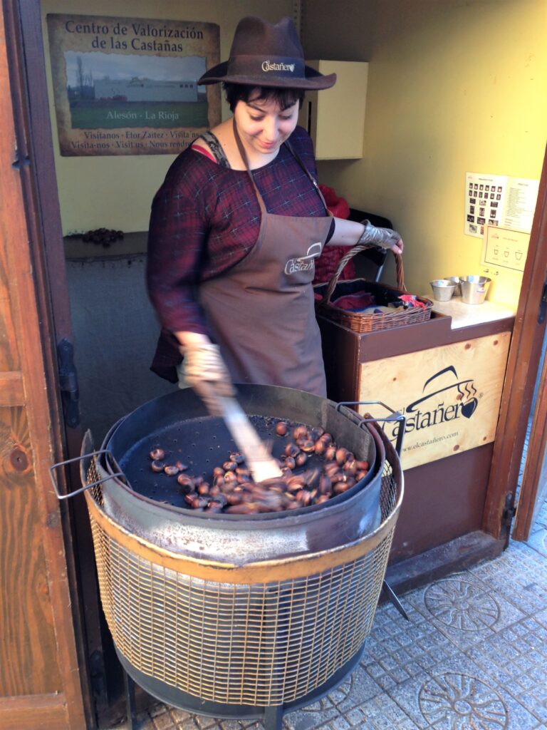 Kvällarna är mörka, temperaturen har sjunkit och sommarens heta stranddagar känns långt borta medan julbelysningen lyser upp centrala gator och torg. Spanjorerna klär sig för årstiden och en svag doft av malmedel skvallrar om att ullkapporna och pälsarna har letats fram. Men ut på stadens gator känner vi också en annan doft förknippad med årstiden, nämligen doften av rostade kastanjer.