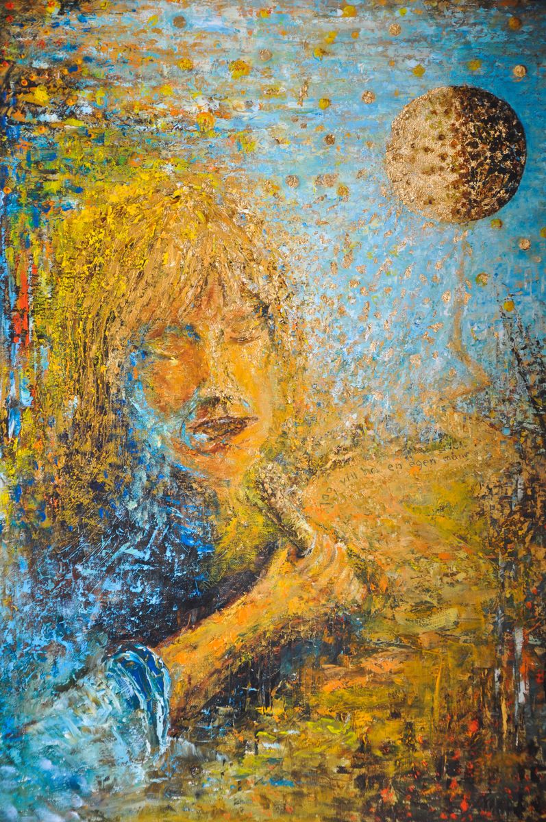 ”Jag får bilderna i huvudet. Ibland kan det också vara musik som inspirerar som i fallet med tavlan Alice från ’Living next door to Alice’ eller mina Ted Gärdestads-målningar: Jag vill ha en egen måne, För kärlekens skull, Sol vind och vattensamt Jag ska fånga en ängel. Dessa fyra kom efter att jag hade en av sångerna i huvudet i flera dagar till dess att jag bestämde mig för att måla dem. En annan sång som inspirerat många målningar är ’All you need is love’.”