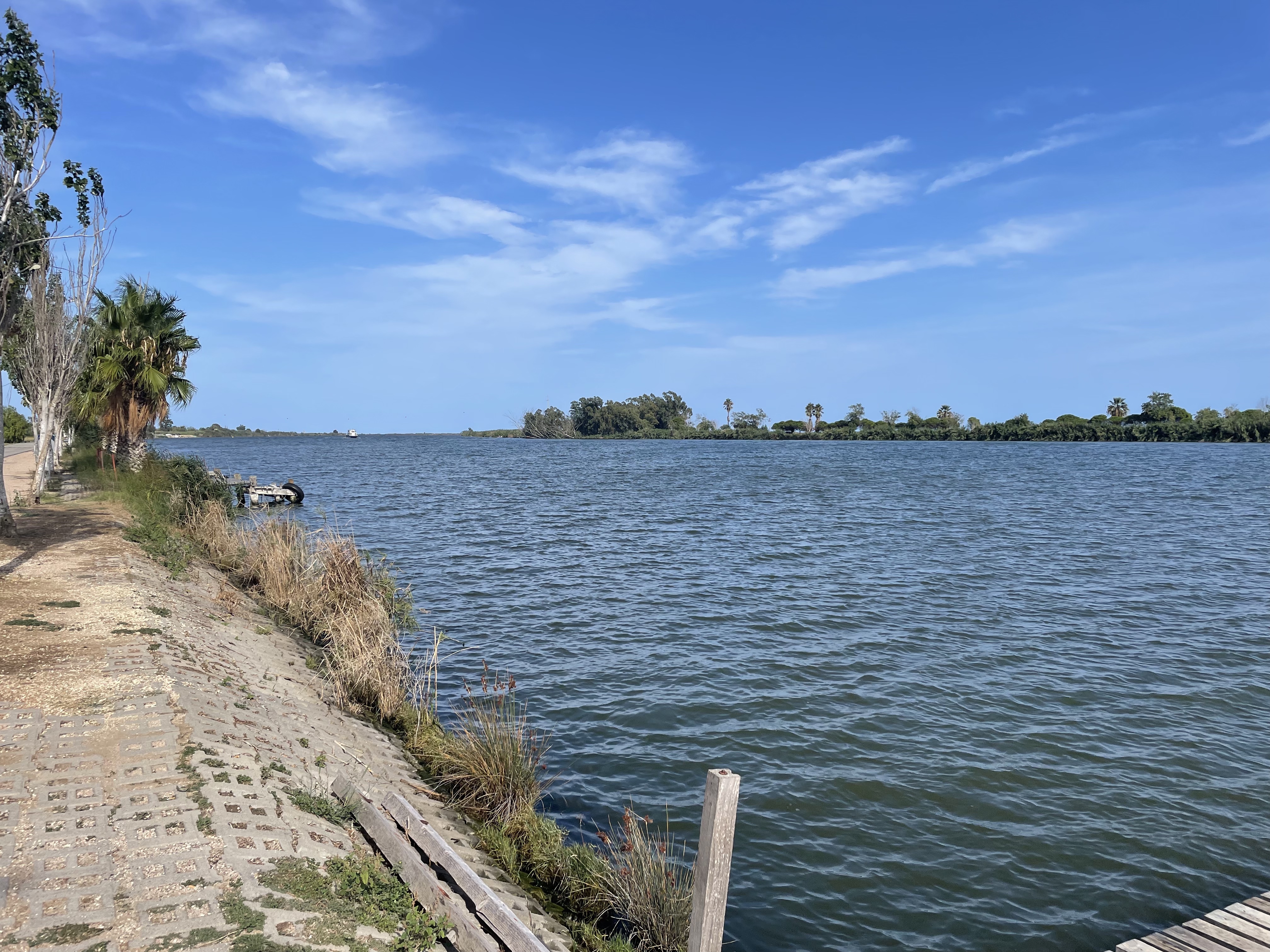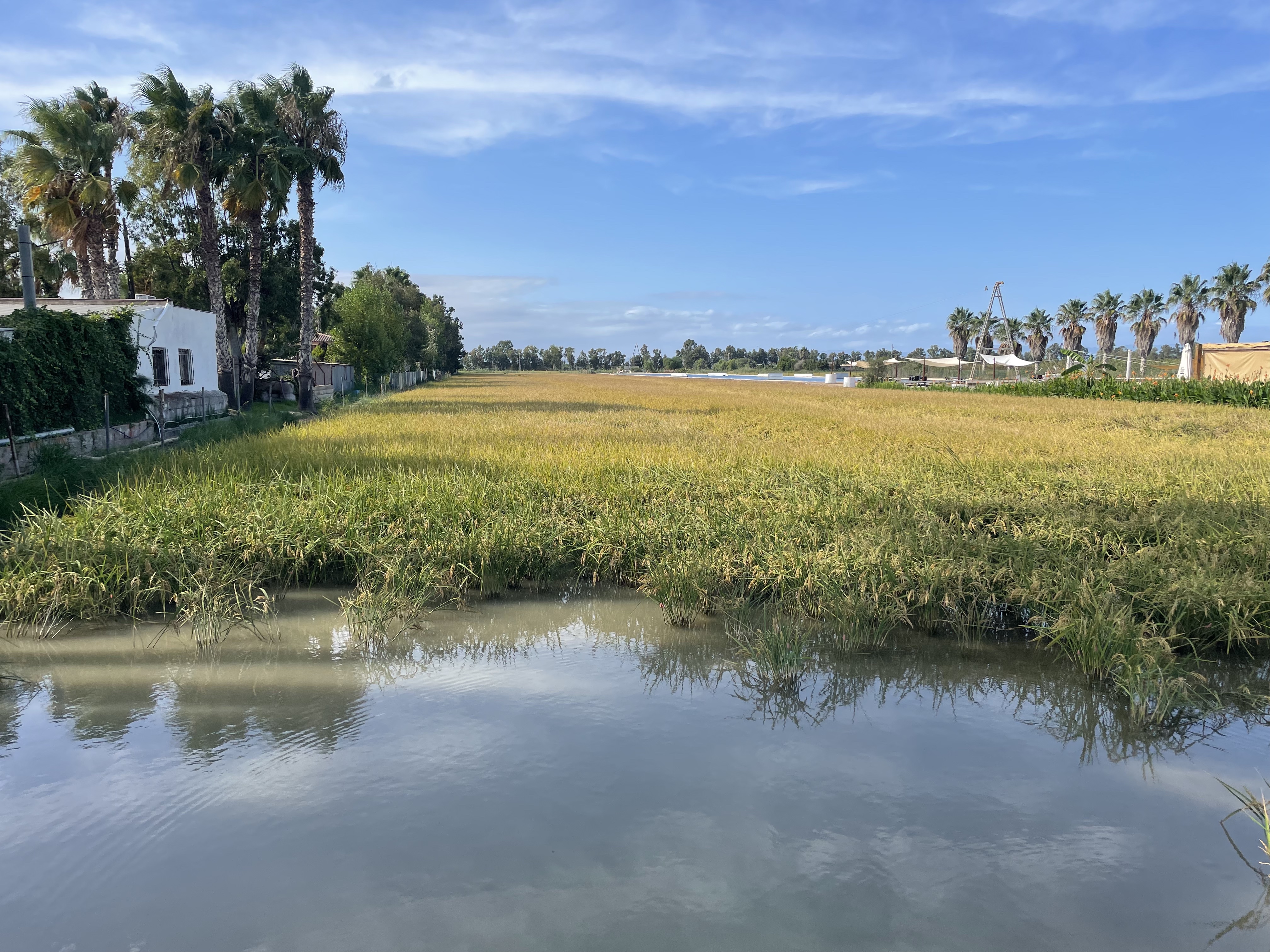 Vi kör mot naturparken på flodens norra sida och följer skyltarna mot Riumar. Längs vägen ser vi en skylt på vilken det står ”desembocadura” (mynning), så vi stannar för att ta en närmare titt på detta. Det första vi ser är några mycket stora bodar med souvenirer, vilket är tecken på att det är många turister som besöker deltat. Det finns också en stor bod som säljer ris som har odlats i området. Ett kilo av detta speciella högkvalitativa ris kostar cirka 5,50 euro. Det finns också bodar där man kan köpa biljetter till någon av kryssningsbåtarna som ligger förtöjda här. Under en sådan seglats får man se stora delar av deltat och turen tar cirka två timmar.