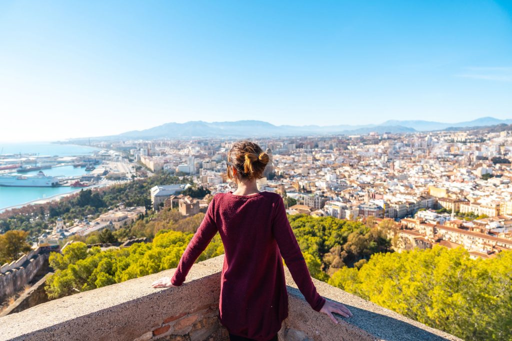 Här är det vackert och stilla och om man bara känner till historien lite grann, eller har en smula fantasi, är det verkligen en upplevelse att gå runt uppe på murarna. Därifrån har man en imponerande utsikt över Málagabukten och ned över Alcazaba, katedralen och centrala Málaga.