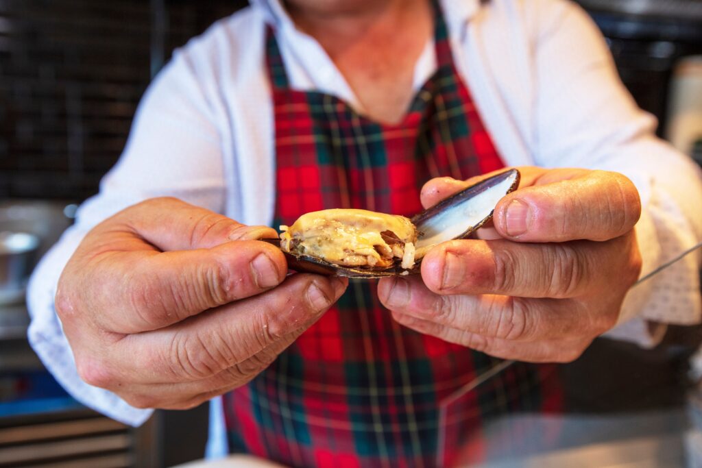 Nästa rätt kräver lite mer arbete. Här gör vi läckra fyllda musslor från grunden.