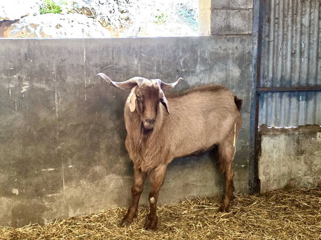 Därefter fortsätter turen in till ett stort, öppet rum där de frigående getterna håller till när de inte är ute. Som herdar för dagen hjälper vi Juan att samla ihop djuren innan det är dags för dem att gå ut på bete. Detta kräver lite manövrering, eftersom de två gamla bockarna inte kan gå tillsammans, så djuren släpps ut i bergen i två grupper, var och en med sin egen alfahane. Och det är här, i bergen med getterna, som Juan trivs som bäst.