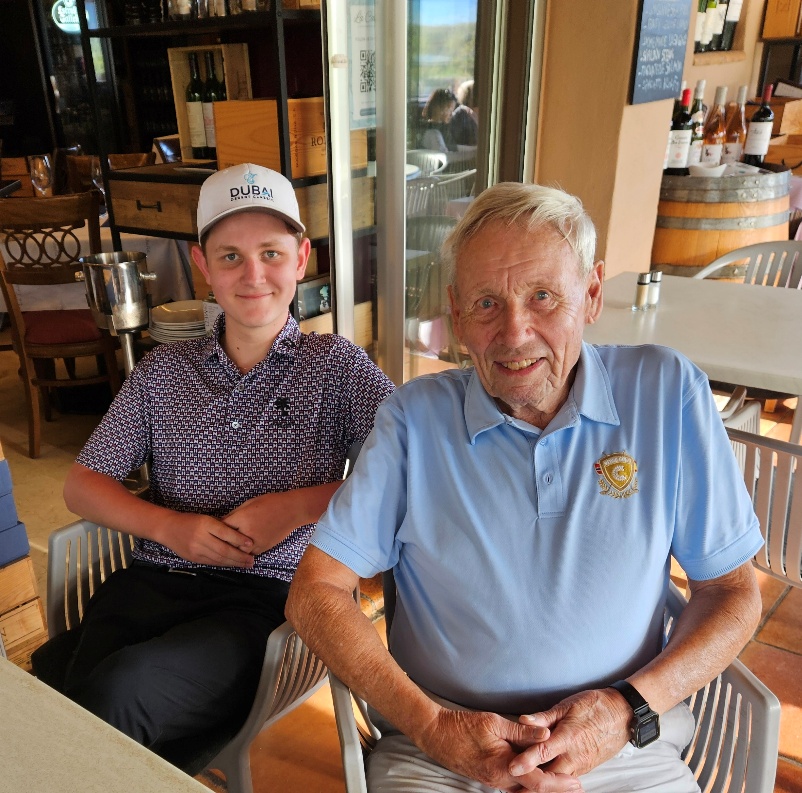 Som kontrast till ungdomarna och deras ålder spelade vår egen Nestor i gänget, Per Eide, också i samma tävling. Åldersskillnaden mellan ungdomarna och Per är mer än 80 år!