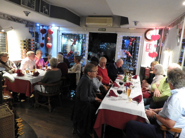 7 december: Tävling på Guadalhorce och samma kväll intog nästan 40 Golf-i-Solare restaurangen Holger Danske i Los Boliches, där Golf i Solen bjöd på julbord. Det var ett underbart dignande danskt julbord med alla läckerheter som kan tänkas. Alla var nöjda och gav också en eloge till den fina servicen. Hit kommer vi gärna igen! Vår egen allsångsledare för kvällen var Gerda och hon hade laddat upp med många snapsvisor.