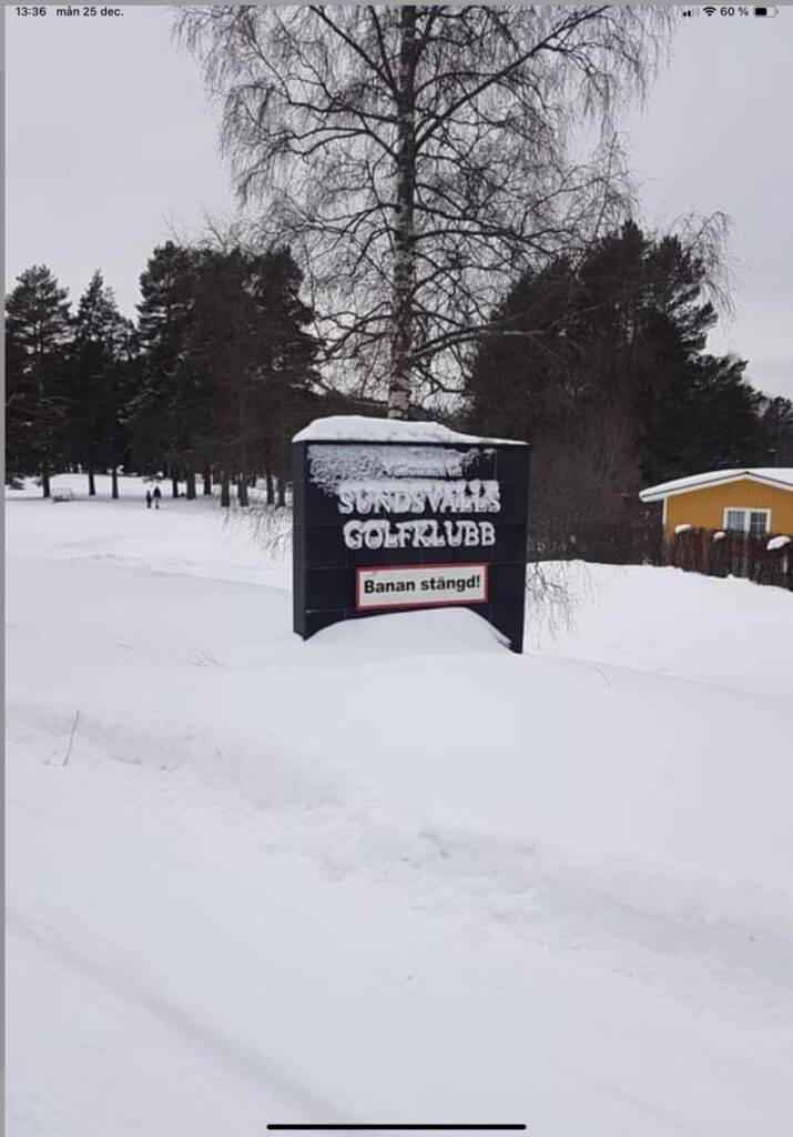 Vi fick även en bild från en av våra medlemmar om hur det ser ut på en golfbana i Mellansverige. Med texten ”Banan stängd!”