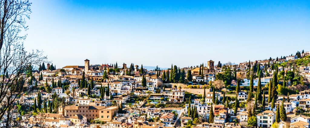 Precis bredvid hotellet ligger ett turistkontor och där går vi in för att få en karta över staden, ett informationsblad med öppettider och en massa idéer. Vi börjar våra två dagar med Albayzín, som är det äldsta och mest ursprungliga kvarteret i staden. Där ska vi se ett bad, två hus, ett palats och den kända utkiksplatsen San Nicolas. Från hotellet behöver vi bara gå 100 m upp till Gran Vía de Colón, korsa gatan och så är vi i Albayzín.