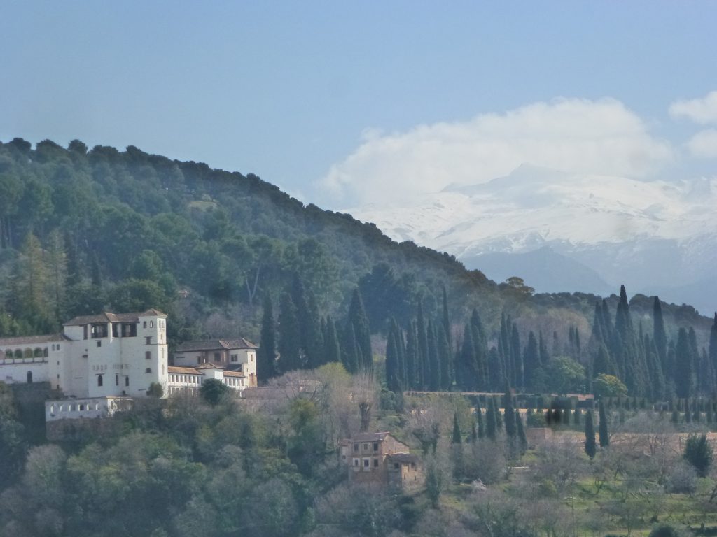 Nu går vi upp till den mycket kända utkiksplatsen Mirador de San Nicolás, som ligger mitt i Albayzín, och härifrån har man en fantastisk utsikt mot Alhambra på den ena sidan och Darro samt snön i Sierra Nevada på den andra.