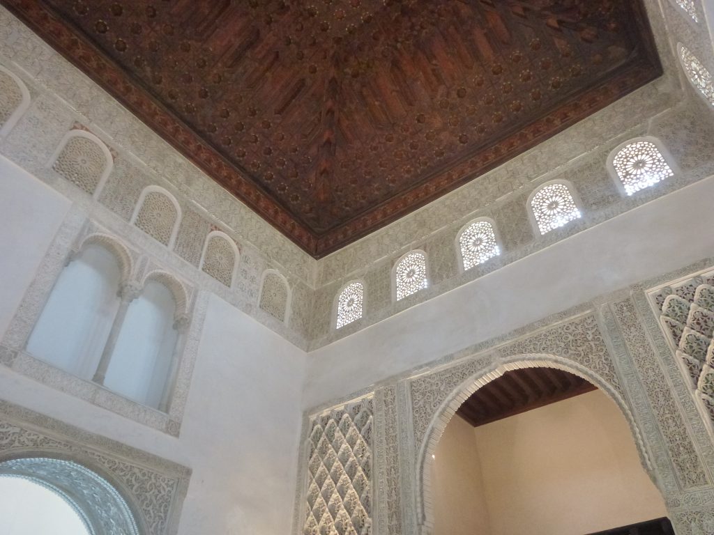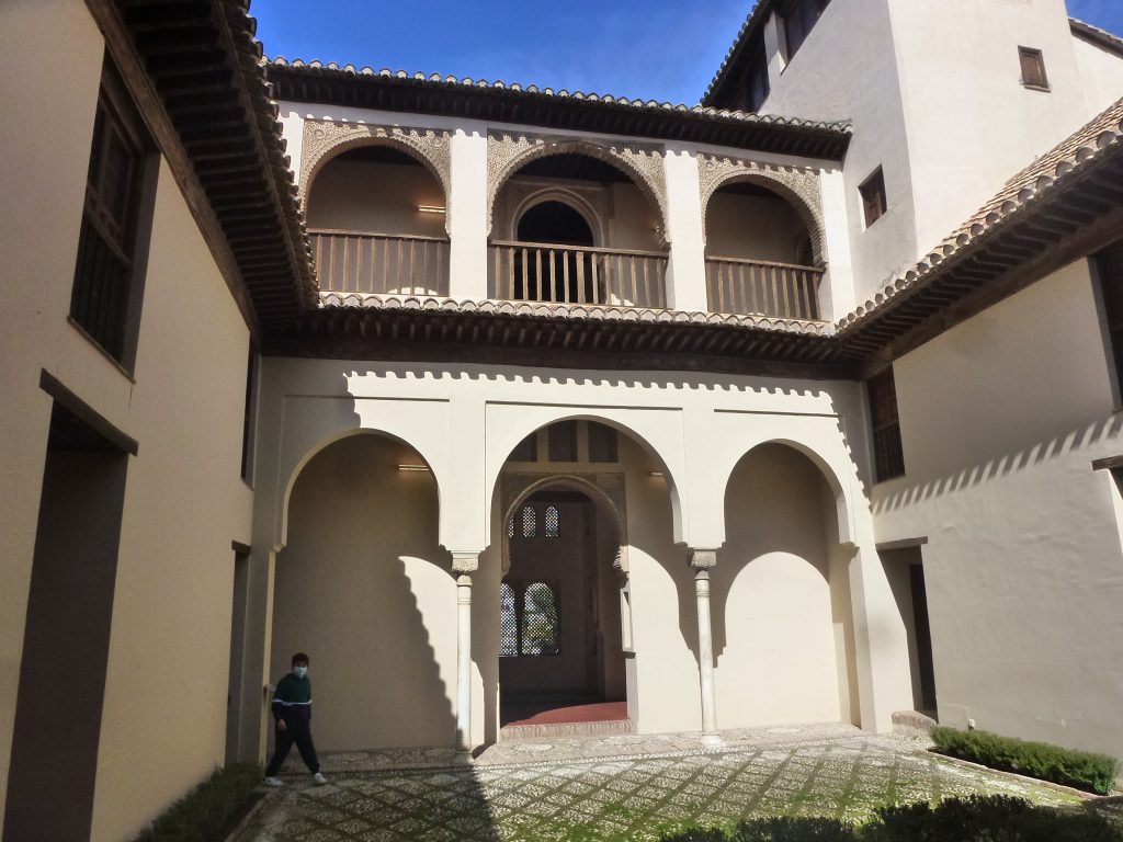 Och nu ska vi in och se Aixas palats högt uppe i Albayzín. Palatset är byggt efter den traditionella planen med en fin patio i mitten och rum runtomkring. Det finns också en trädgård och på en del ställen har man fin utsikt över staden. Palatset är fint, men det kan inte jämföras med Alhambra.