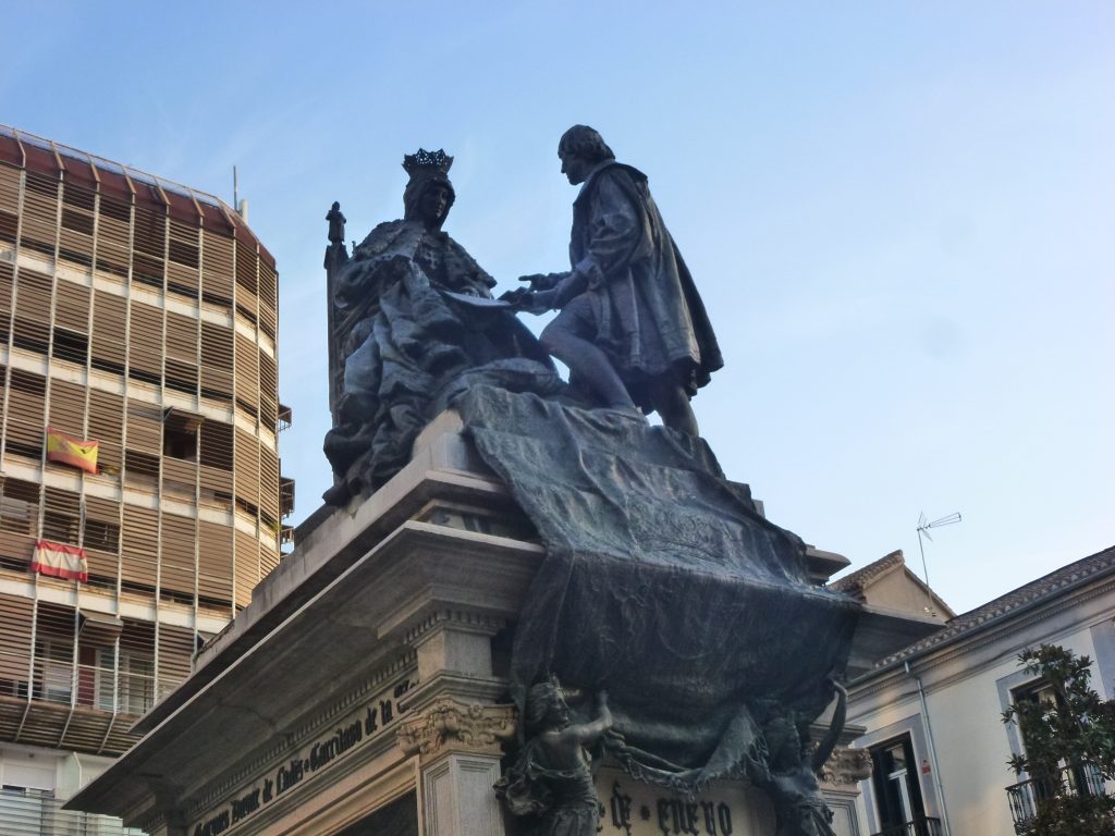 Under pandemin stängde alla barer, restauranger och butiker kl. 18, men när vi är här får vi vara ute till kl. 22, så vi promenerar ned till floden Genil, där en hel del människor har samlats. Därefter promenerar vi till Gran Vía de Colón, men beundrar först statyn av Columbus och drottning Isabella i centrum. Statyn är stor och föreställer Columbus på knä vid drottningens fötter. Det var precis efter Granadas fall som drottning Isabella beviljade Columbus pengar till hans färd över Atlanten. Kontraktet skrev under den 11 januari 1492 och bara 10 månader senare, den 12 oktober, steg Columbus i land på en liten ö utanför den amerikanska kontinenten. Men det är en annan historia.