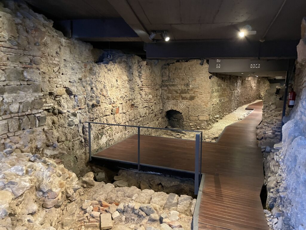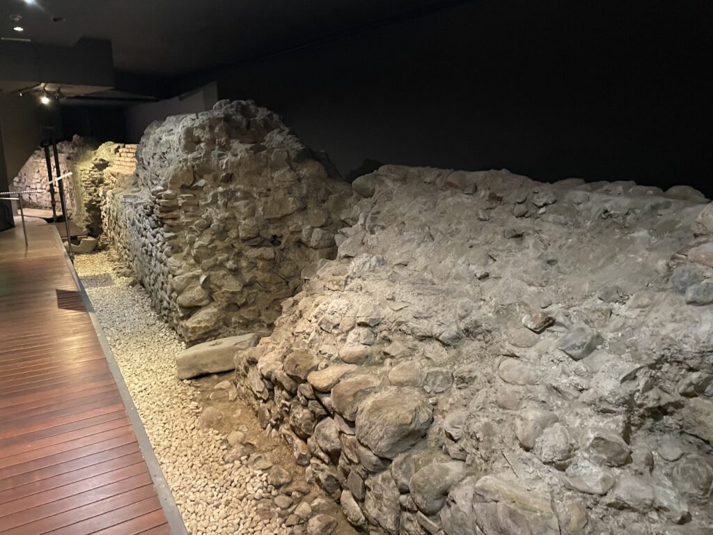 Nere i källaren kan man gå cirka 100 meter längs den gamla stadsmuren och till och med svänga runt ett hörn för att se mer av muren. Belysningen i rummet är fin och det är spännande, och det är också ett oväntat möte med flera lager av stadens historia, så hit bör man utan tvekan komma.
