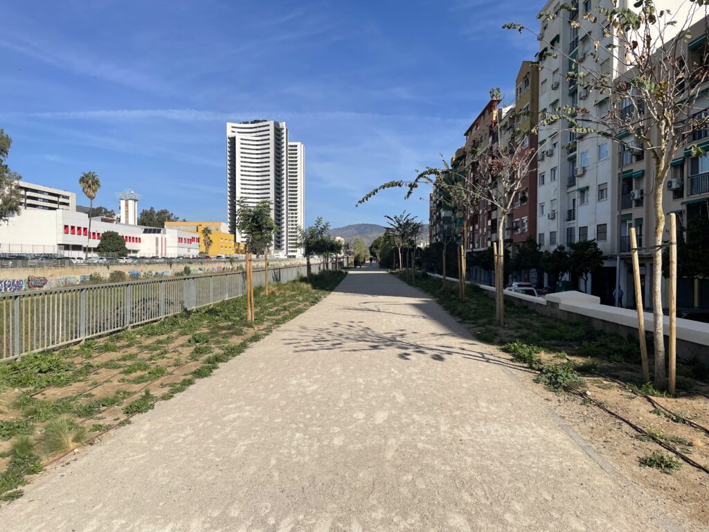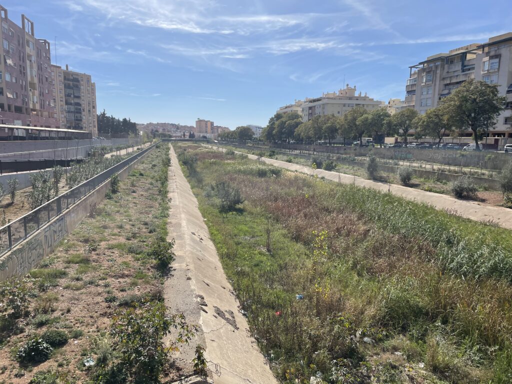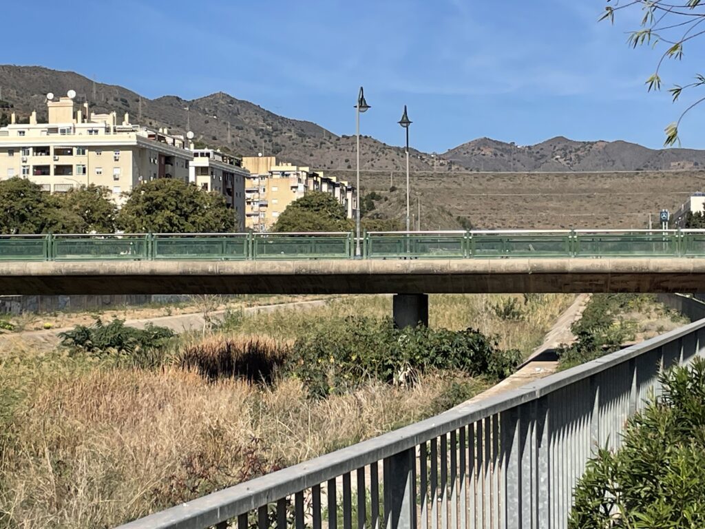 Vi korsar floden på den sista bron och vänder nu tillbaka mot havet på motsatt sida. Vi njuter verkligen av dagens vandring och är gläds att vi nu har fått en ny inblick i Málaga stads geografi och var floden leder fram.