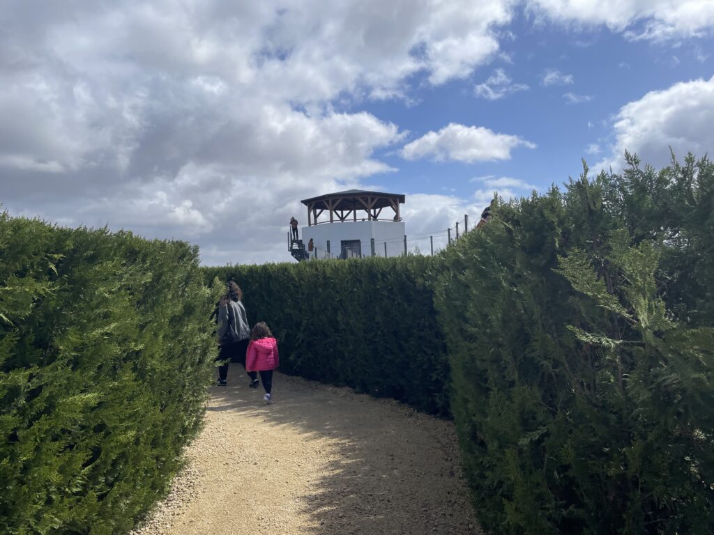 Labyrinter har varit kända sedan antiken och den mest kända låg på Kreta flera århundraden före Kristus. Vad är så tanken med en labyrint? Jo, det ska vara både roligt och utmanande att gå i en labyrint, och utmaningen ligger i att man varje gång som man kommer till ett vägskäl, måste välja åt vilket håll man ska fortsätta för att ta sig igenom labyrinten. Kommer man till en ”återvändsgränd” måste man gå tillbaka och välja om. Och så håller det på, och det kan vara ganska förvirrande. När vi besöker Labyrintus Park hörs det dock en massa skratt överallt, för vem tycker inte en utmaning? Parken är vacker och i gångarna finns det till och med tio frågor om spanska djur som man ska besvara. Och så är detta det den enda biotekniska labyrinten i världen.