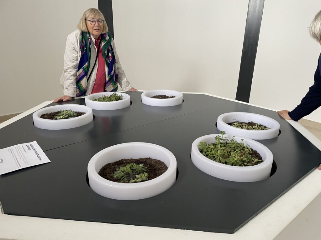Labyrinten är inte bara för skoj, utan den har också en pedagogisk aspekt då den lär besökarna om bioteknik. Och eftersom vi är helt nybörjare på detta område tycker vi att det är mycket intressant. Bioteknik är många saker, men just här illustrerar man hur växter genererar el när man rör vid dem. Man har valt ut bestämda växtarter som är särskilt känsliga för mänsklig beröring, och energin som alstras illustreras på så sätt att energin är tillräckligt stark för att ge liv åt en liten högtalare, som tydligen får växten att tala. Det är så guiden förklarar det, men det är den genererade energin som startar ett förinspelat ljudklipp. Man pratar alltså inte med växten och frågar hur den mår. Det skulle ju å andra sidan ha varit kul. I det stora tornet, som är labyrintens slutmål, illustreras energin som skapas genom beröring av ett vackert naturfoto som projiceras på väggen.