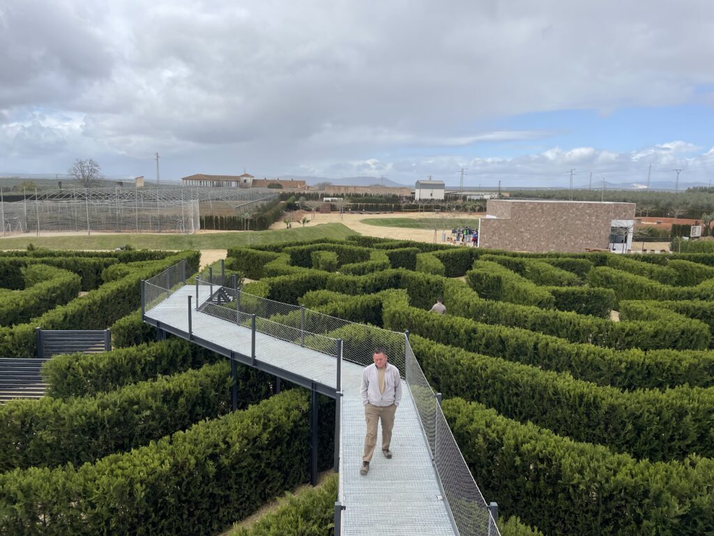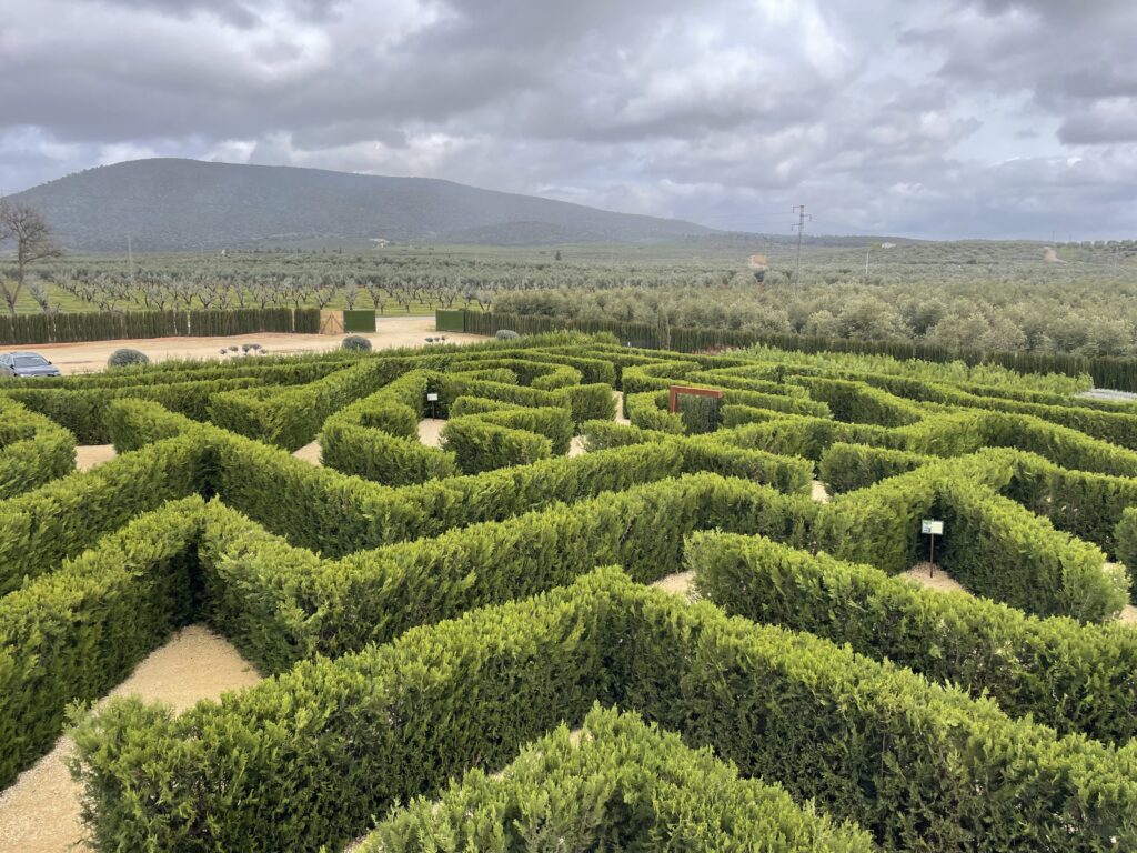 Labyrinten ligger i den lilla byn Mollina, 67 km norr om Málaga, och det är motorväg hela vägen dit. Man skriver bara in Labyrintus Park i GPS:n och så hittar den vägen själv. Webbplats: https://www.laberintuspark.com/ (både på spanska och engelska). Parken har designats av Adrian Fischer, som är en av världens mest kända labyrintdesigners och den täcker 4 hektar. Den öppnades 22 februari 2025, och arbetet med den hade då pågått i sex år. Det tar ju trots allt tid för häckar att växa. I dag står parken vacker och inbjudande. Inträdet kostar 8 euro och det är det värt.