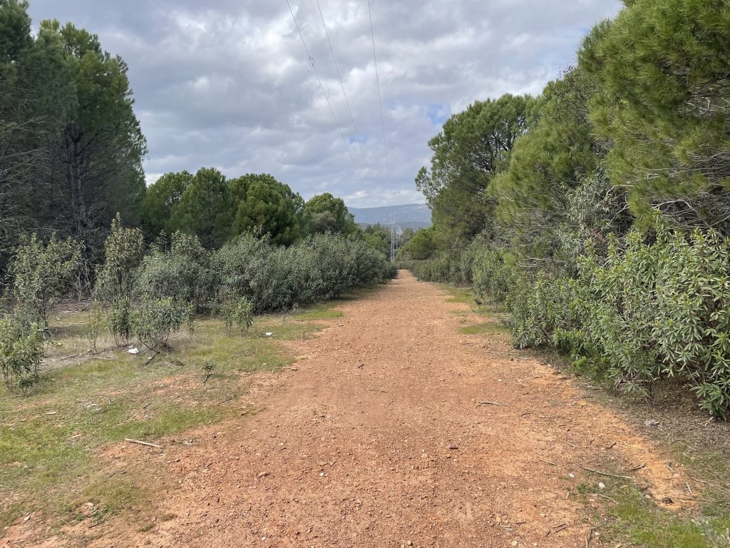 Nu säger vi adjö till museet och ska fortsätta ner för att ta en tur på slagfältet. Vi kör därför till vänster när vi kommer ner längs den lilla vägen som leder bort från museet, och så följer vi skyltarna mot Los Llanos de la Américas. Detta är ett litet besökscenter som ligger mitt på slagfältet, men det har samtidigt en utställning som handlar om naturparken Despeñaperros. Dessvärre är det stängt när vi är här. Vi hittar i alla fall en fin stig som leder en runt på slagfältet. Dock går man runt bland en massa tallar, och kan inte se någonting alls, så, vi får ta till fantasin för att uppleva det väldiga slaget. Inte heller möter vi en enda levande själ, så det är inte alls speciellt spännande.
