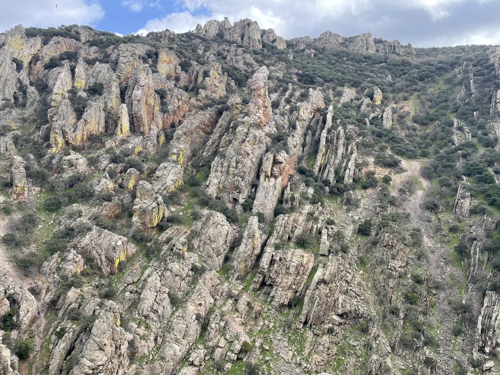 Los órganos i naturparken. Man kan se en stig som leder upp genom klippartiet.