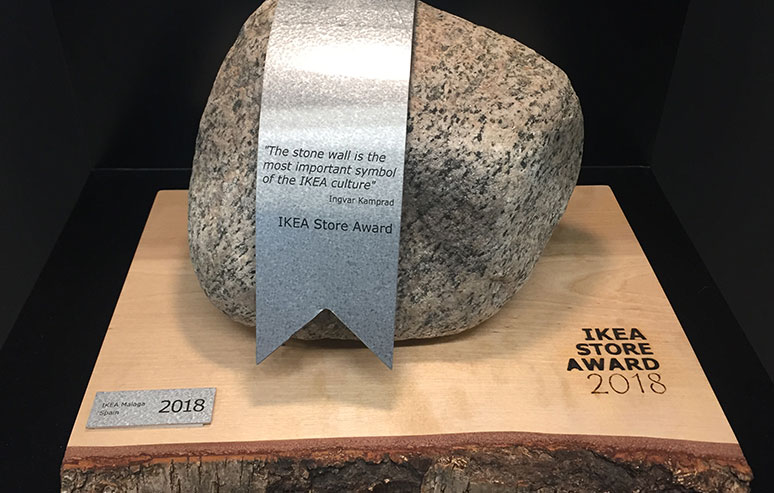 IKEA-varuhuset i Málaga utnämndes förra året till världens bästa IKEA, baserat på initiativ och resultat från verksamhetsåret 2018. Inne på kontoret ligger beviset, en granitbumling. Stenen kommer från en gärdesgård i Älmhult och symboliserar kraften hos IKEA. Och nyligen axlade Linus Frejd rollen som varuhuschef för IKEA Málaga.