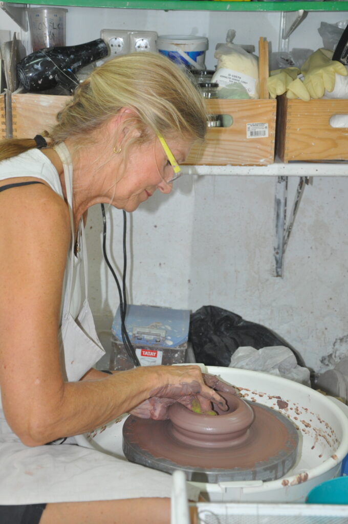 ”Det var Mikael som hade en dröm om ett litet boende vid Medelhavet, och när vi hittade vår bostad här visste vi bara att vi hittat rätt. Men jag ville ändå ha något att göra. Jag var van att jobba – jag var ju egenföretagare, och som alla egenföretagare vet innebär det mycket jobb, och så var jag ju van att också ha villa och trädgård, med allt som det innebär. Men här hade jag plötsligt inget att göra. Så en dag hittade jag en studio där jag kunde syssla med keramik. Efter några år hittade jag till den här lokalen i La Campana, som en kvinna hade som keramikverkstad. Först hyrde jag in mig, men så småningom tog jag över förstahandskontraktet och då köpte jag också loss ugnen. Sedan inköptes en drejskiva och diverse keramikverktyg och sen var driften i gång. Genom åren har flera som vill hålla på med keramik kommit hit. En del är helt nybörjare och andra vill göra lite på semestern. Vissa hyr in sig för en längre tid medan andra bara kommer för några dagar och vill att jag ska visa dem lite olika tekniker. Jag håller också kurser och evenemang. Men främst är studion för mig, och även om det jag skapar är till salu är allt ren hobbyverksamhet”, berättar Anette.