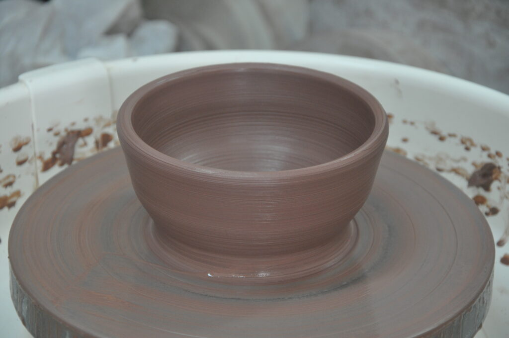 Inne i studion ser vi vad Anette sysslar med just nu, nämligen handfat. Idén kom i samband med byggandet av ett attefallshus, till vilket hon tillverkade just ett handfat. Just nu håller hon på med ett nytt handfat, men ett avlångt sådant.