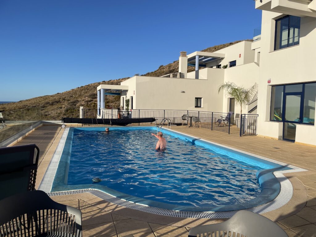De andelsägare som jag pratade med här var alla mycket nöjda med detta koncept. Det finns också ett poängsystem som gör det möjligt att byta veckor med andra, och man kan också byta veckor med andelsägare i Italien. Alla var glada och kände att det hade berikat deras liv att kunna resa ner till Spanien utan att behöva investera en förmögenhet i en egen bostad. Alla sa att de kände sig hemma, även om det var en delad bostad, och alla var både trevliga och vänliga människor.