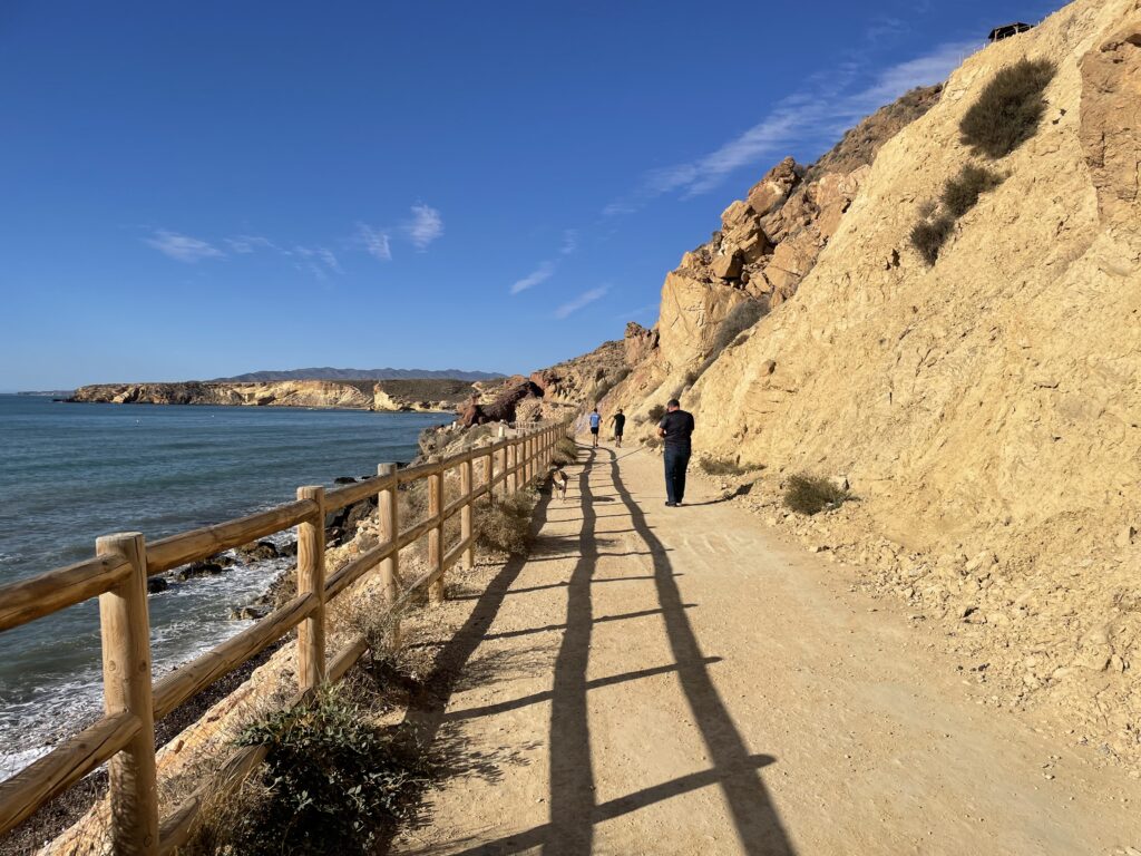 För cyklister finns en 14 km lång vía verde (grön väg) som börjar precis i utkanten av staden Mazarrón. Alla via verdes är anlagda på nedlagda järnvägar, vilket innebär att de är helt plana och alltså en ren glädje för både vandrare och cyklister. Vi hittade till början på rutten genom att köra till slutet av Calle Lorca och sedan svänga höger strax före motorvägen. Se: https://www.turismoregiondemurcia.es/es/via_verde_mazarron/