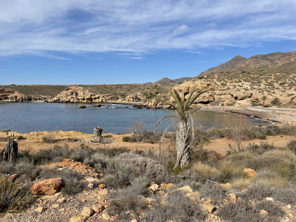 Själv blev jag särskilt betagen av kusten väster om Bolnuevo, som är en av de vackraste kustlinjer som jag har sett i Spanien. Här har det anlagts en stig som man kan vandra och cykla på, och det är en fröjd för alla sinnen. Klippornas färger varierar mellan beige, brun, orange, rött, svart och lila – ja, det är sant, lila stenar. I vattnet utanför kusten är det full av små öar som ligger utspridda i vattnet, och på två av dem bor det sjölejon – lobos de mar – på spanska alltså ”havsvargar”, men på svenska kallar vi vargarna för lejon. Av denna orsak är öarna skyddade, för vi får ju inte störa djurlivet.
