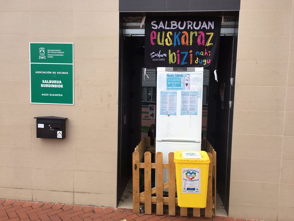 Det första solidariska kylskåpet installerades april 2015 hos den ideella föreningen GBGE (Galdakaoko Boluntarioen Gizarte Elkartea) i kommunen Galdakaoko, i Baskien. Föreningen har i dag ca 250 volontärer som förutom att samla in och distribuera mat till fattiga familjer i kommunen även ansvara för att rengöra kylskåpen, med syfte att underlätta upphämtning och delning av mat. Organisationens koncept består av att installera kylskåp för att undvika att människor ska behöva rota igenom sopor. Tanken bakom att dessa kylskåp står på gator eller offentliga platser är så att ingen ska behöva känna sig obekväm när de närmar sig kylskåpen, oavsett om det är för att hämta eller lämna mat. Även om det kan verka som ett projekt för dem i störst nöd så är projektet utformat för alla.