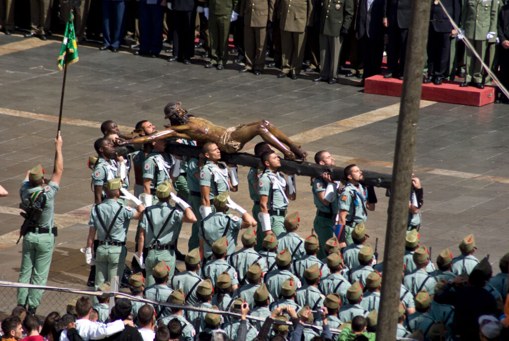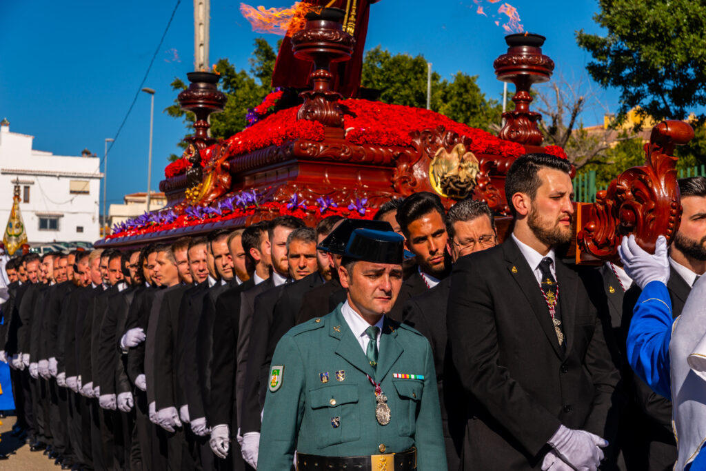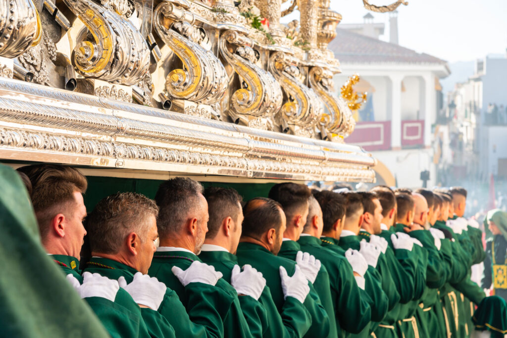 Tronbärarna kallas för Los Costaleros och det är en sann ära att få vara med och bära en tron. Tronerna kan väga många tusen kilo och bärarna kan uppgå till några hundra. Vid sidan om dessa går Los Nazarenos (botgörarna). Klädda i sina långa kåpor och konformade capirotes (huvudbonaderna), med bara två hål för ögonen, ger dessa ett nästan skrämmande intryck. Även för los nazarenos är det en ära att gå i processionen och de går för att sona sina synder. En del går barfota och andra till och med på knä för att uttrycka sin ånger, allt i skydd av capiroten, vars konform för den ångerfulla närmare himlen.