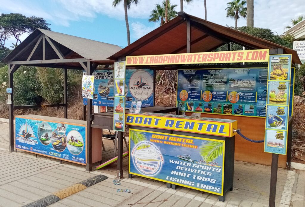 Det går också att hyra båt i hamnen. Det finns bland annat båtutflykter med katamaran för att titta på delfiner, dyka eller fiska. Det finns även möjligt att hyra båt med kapten i några timmar, en hel dag eller längre, och en favorit bland folk är en dagsutflykt till Afrika med hyrd båt. Vidare finns det naturligtvis även vattensporter och det finns uthyrning av t ex vattenskidor och vattenskoter.