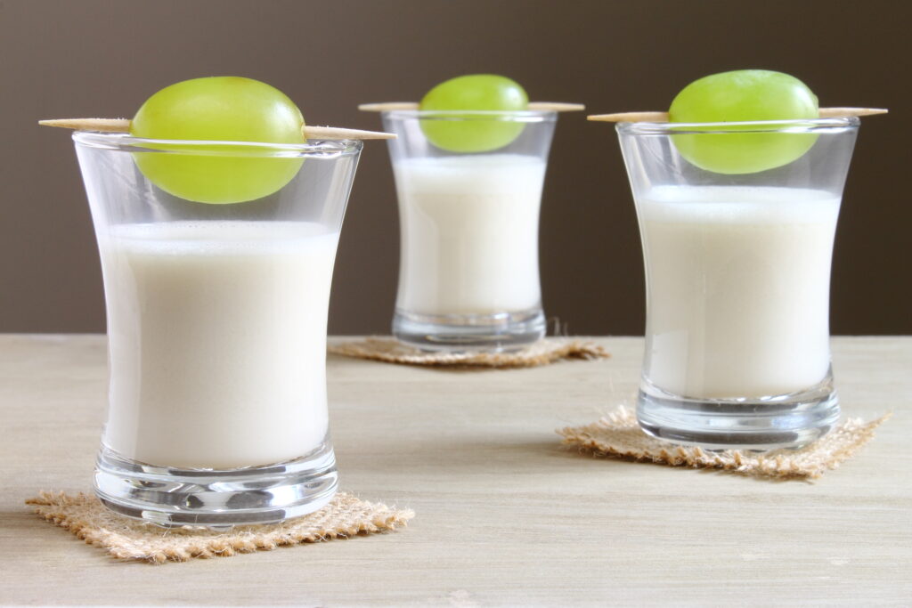 Ajoblanco de coco con sardinas ahumadas y uvas