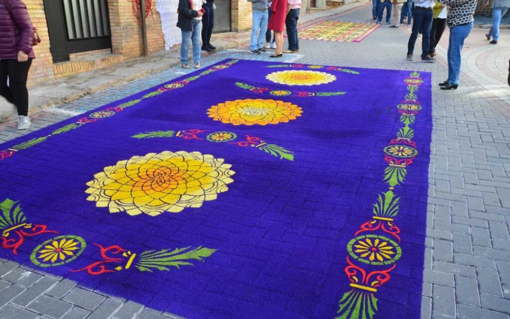 Elche de la Sierra ligger i Albaceteprovinsen i Kastilien-La Mancha (ej att förväxla med Elche i Alicanteprovinsen). Vid den senaste folkräkningen hade Elche de la Sierra ca 3 500 invånare. Varje år i slutet av maj är gatorna i Elche de la Sierra dekorerad med blommiga ”mattor” gjorda av färgat sågspån. Sågspånen kommer från det lokala sågverket och fördelas i stora burkar innehållande olika färger. Sedan torkas spånen innan de läggs i fina mönster på de smala gatorna. Detta evenemang lockar allt fler turister för varje år som går.